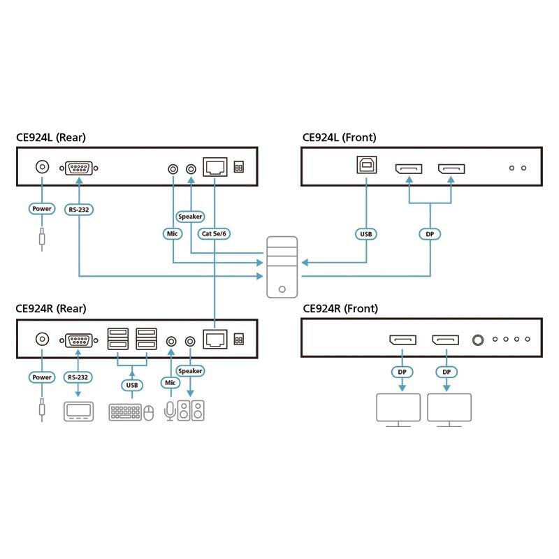 ATEN - CE924 - Système d’extension KVM USB DP double vue HDBaseT™ 2.0