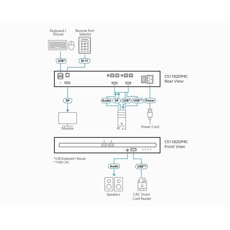 ATEN - CS1182DP4C - Commutateur KVM sécurisé DP à 2ports USB avec CAC