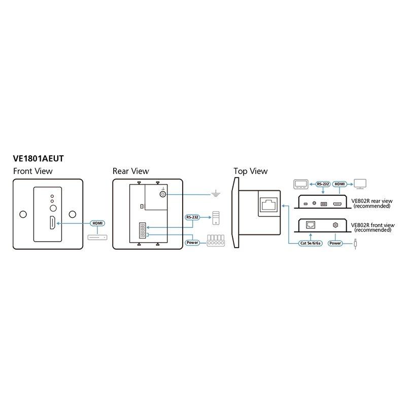 ATEN - VE1801AEUT - Transmetteur HDMI HDBaseT-Lite avec plaque murale