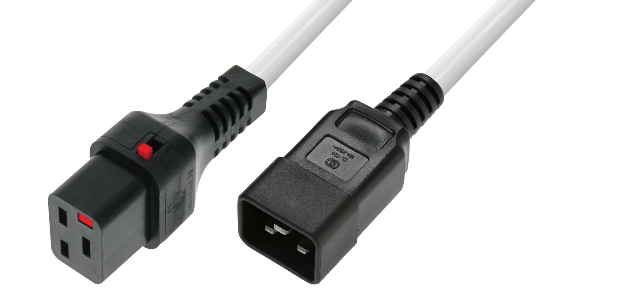 IEC Lock - Rallonge secteur C13/C14 avec cage sur C13 - 1.5m Orange